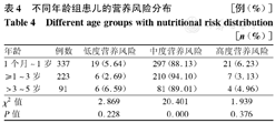 | 年龄 | 例数 | 低度营养风险 | 中度营养风险 | 高度营养风险 |