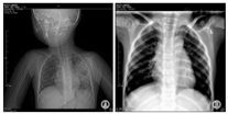 注:A:2010-04-30胸片示左上肺炎、肺脓肿;B:2010-11-22胸片示左上肺炎、肺脓肿基本吸收