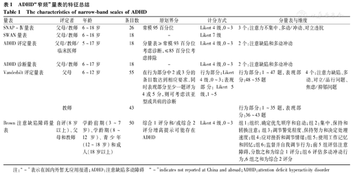 ADHD"窄频"量表的特征总结