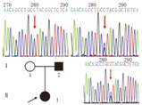 注:Ⅱ1为先证者;Ⅰ1、Ⅰ2分别为先证者母亲、先证者父亲,箭头示c.1580位点