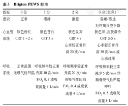 在儿科临床工作中,儿童的评分系统相对成人来说种类偏少,且过于复杂,无完善、快捷的评分系统用于快速识别危重症或潜在危重症患儿,使得这类患儿的病死率居高不下。为改善这种状况,Monaghan等[9,10]分别提出了PEWS。Hunt等[11]研究显示将PEWS应用于临床后,可快速识别危重症患儿,及早干预,降低患儿病死率。但在国内尚未见相关文献显示已有医疗机构开展PEWS。