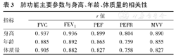 肺功能主要参数与身高、年龄、体质量的相关性