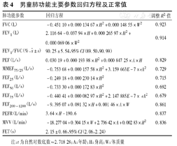 男童肺功能主要参数回归方程及正常值