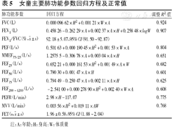 | 肺功能参数 | 回归方程 | 调整R2值 |