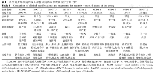 各型青少年发病的成人型糖尿病临床表现和治疗方案比较