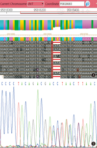 A:the figure of high throughput targeted exome sequencing;B:the figure of Sanger sequencing