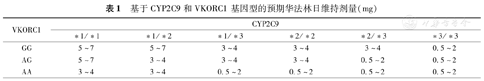 基于CYP2C9和VKORC1基因型的预期华法林日维持剂量(mg)