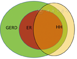 综上,如GERD合并以下情况:(1)合并食管外症状,如哮喘、慢性咳嗽和明显的咽喉部症状等;(2)双倍剂量的PPI治疗8~12周后烧心和(或)反流等症状无明显改善;(3)长段Barrett食管、LA-B级以上食管炎或(和)食管炎性狭窄等;(4)合并食管裂孔疝;(5)上消化道术后反流:包括食管、近端胃、远端胃或全胃手术等;(6)十二指肠淤积症;(7)明显的胆汁反流;(8)过敏感食管或功能性烧心;(9)硬皮病等自身免疫性疾病所致的食管功能障碍;(10)合并明显焦虑和(或)抑郁等心理障碍;(11)合并腹胀等其他胃肠功能性疾病;(12)口服PPI等药物维持治疗1年以上仍不能停药;(13)口服PPI等药物维持治疗半年以上食管炎未愈合,可明显增加GERD诊治的复杂程度和难度,从而导致药物使用种类、剂量以及疗程的增加,甚至使GERD从内科疾病转化为外科疾病。应给于充分的相关专科检查和评估,根据其症状特征、严重程度等,由内科至外科循序渐进多学科多方法综合诊治。