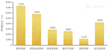 DVT与骨折部位发生率密切相关,临床应对股骨远端、股骨干、髋周及骨盆骨折进行DVT重点预防。