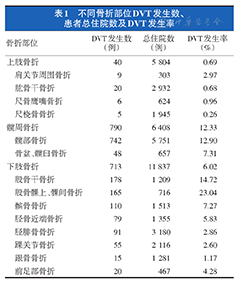 | 骨折部位 | DVT发生数(例) | 总住院数(例) | DVT发生率(%) | |