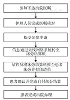 我院从2012年9月实施"先住院后结算"的结算模式后,为更好地落实便民、惠民政策,医院将窗口服务工作前移,移至患者病床旁。为实现这一目标,我院首先与生产企业共同设计、研发了一体式床旁结算系统,将医院收费系统、医保系统、银行POS机、验钞机、打印机整合在一台可移动推车式床旁结算机上,并通过院内无线网络与医院收费及医保系统实施联网,达到全院各病区内的网络全覆盖。患者在入院时可以直接到达住院病区,由结算员将床旁结算机推至患者身旁,完成患者个人信息和医保信息的录入,直接在病区内完成入院流程;患者在出院时,提交完医嘱后,由护士提交出院证明,楼层收费员将床旁结算车推至患者床旁,详细讲解住院期间费用情况,完成当场结算。具体流程见图1,图2。为保证服务质量和效率,我们同时对窗口收费人员进行医患沟通技巧、出入院结算方式、医保和财务政策及医院信息系统操作方面的培训考核,使每一位收费人员熟知医保结算流程,熟练掌握各类软件操作,有效解决患者需求。至此,我院真正实现了患者不离开病房即可得到出入院办理、医保政策咨询、现金或POS机付费等全方位服务。床旁结算员为财务专业人员,熟悉财务方面的政策法规,在为患者服务的同时积极参与科室收支管理,监督患者诊疗过程中不合理收费及重复收费现象,对发现的问题及时与临床医师及科室领导沟通,在一定程度上杜绝了临床诊疗过程中因医护人员疏忽大意而造成的患者经济损失,大大降低了医疗纠纷和投诉事件。