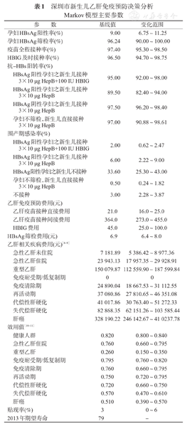 深圳市新生儿乙肝免疫预防决策分析Markov模型主要参数