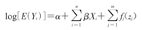 式中,Yt为观察日t的当天心脑血管疾病死亡人数,对于每个t,服从总体均数为E(Yt)的Poisson分布;E为观察日t的当天心脑血管疾病死亡人数期望值;α为截距;Xi为对应变量产生线性影响的自变量(颗粒物浓度指标);β为回归模型估计的指示变量系数;Fj(Zj)为自然样条函数;Zj为对应变量产生非线性影响的变量(时间、气象因素等)。