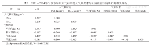 2011-2014年宁波市每日大气污染物及气象要素与心脑血管疾病死亡的相关分析