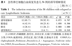 注:CODLP:环磷酰胺、泼尼松、多柔比星、左旋门冬酰胺酶、长春地辛方案;VDLD:地塞米松、多柔比星、培门冬酶、长春地辛方案 CODLP:Cyclophosphamide,Prednisone,Doxorubicin,L–Asparaginase,Vindecine induction;VDLD:Dexamethasone,Doxorubicin,Pegaspargase,Vindecine induction