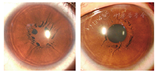 所有患者术中均未造成晶状体、虹膜及角膜内皮的直接损伤,术后无明显的角膜水肿、前房积血等并发症发生。能够配合视力检查患者,术后视力较术前均有不同程度提高。术前及术后眼部情况见图1,图2。