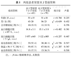 | 临床资料 | 双J管留置7 d手术组(n=63) | 双J管留置>7 d手术组(n=79) | 统计量 | P值 | |