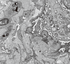 3例患儿(例2、例6、例7)进行了肾脏穿刺活检,光镜检查均可见肾小球系膜细胞和基质不同程度弥散或节段增生,毛细血管襻内皮细胞增生及肿胀;小动脉管壁增厚,部分小动脉壁葱皮样增生,可见毛细血管腔内淤血伴微血栓形成。2例患儿免疫荧光染色可见系膜区轻度IgG、IgM和C3沉积,1例免疫荧光染色均为阴性。电镜检查可见毛细血管内皮细胞肿胀,基底膜内疏松层增厚,见图1。