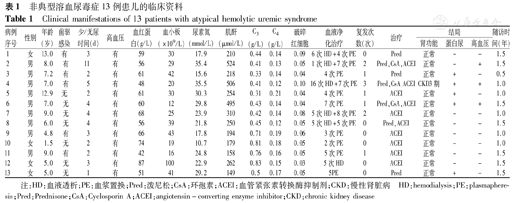 Clinical manifestations of 13 patients with atypical hemolytic uremic syndrome