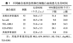 不同融合基因急性淋巴细胞白血病患儿生存时间