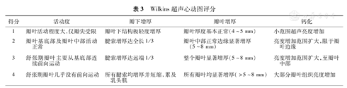 | 1 | 瓣叶活动程度大,仅瓣尖受限 | 瓣叶下结构极轻度增厚 | 瓣叶厚度基本正常(4~5 mm) | 小范围超声亮度增加 |