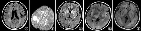 此外,本研究中有4例患者出现了甲状腺抗体升高,需要与桥本脑病相鉴别。我国学者曾探讨桥本氏脑病临床特点[12],发现患者也可出现认知障碍和精神障碍等脑病表现,但血清抗甲状腺过氧化物酶抗体(aTPO)多升高达数倍至数十倍,脑脊液细胞数多接近正常,头颅MRI无病灶或表现为非特异性改变。但本组ADEM患者的aTPO/aTG仅为临界升高水平,脑脊液细胞数有较明显上升,头颅MRI显示符合AEDM典型病灶改变,以上特点可与典型的桥本氏脑病相鉴别。事实上,多种中枢神经系统脱髓鞘疾病可以合并甲状腺抗体异常,而aTPO升高也可见于部分正常人群。但ADEM和桥本氏脑病均为免疫性疾病,而且临床表现多样,是否存在一定的重叠值得进一步研究探讨。