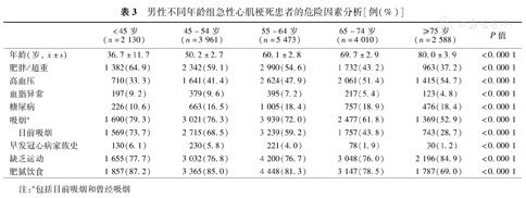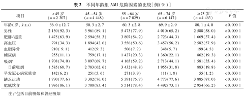 描述中国不同年龄组急性心肌梗死(AMI)患者心血管危险因素的分布状况。