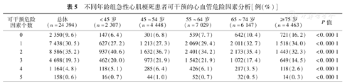 不同年龄组急性心肌梗死患者可干预的心血管危险因素分析[例(%)]