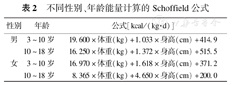 不同性别、年龄能量计算的Schoffield公式