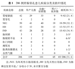 | 疾病名称 | 总数 | 早产儿数 | 治愈/好转数 | 死亡/放弃数 | 病死率(%) |