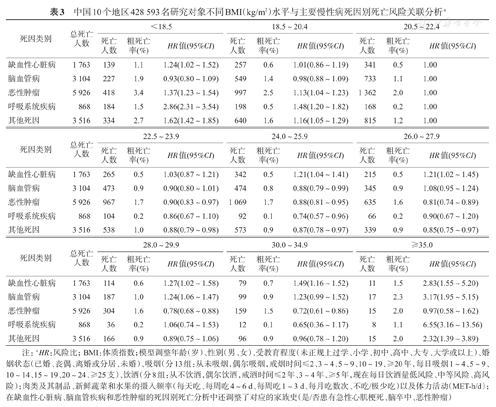 中国10个地区428 593名研究对象BMI与全死因死亡风险关联分析a