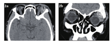 10岁以下的患者占35.7%;有明确视力下降者占59.5%;瘘道与瘘管形成占晚期入院患者的57.7%、结膜息肉形成占30.8%。眼眶CT诊断急性期植物性异物的准确率为37.5%,中晚期为84.2%;眼眶MRI诊断中晚期植物性异物的准确率为93.8%,其特点为增强MRI时病灶中央无强化影(异物,不强化),周边明显强化,冠状位的典型表现为环状强化。