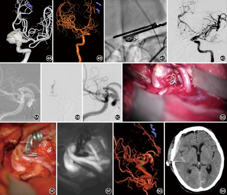 依托解放军火箭军总医院复合手术室及首都医科大学附属北京天坛医院复合手术室,自2013年12月11日首例神经血管病复合手术[16,17]起,截止至2016年10月31日,赵继宗院士外科团队联合姜卫剑教授介入团队已成功施行动脉瘤复合手术52例,脊髓血管畸形复合切除术4例,颈动脉闭塞颈动脉内膜剥脱+支架复合手术30例,脑膜瘤复合切除术2例,硬脑膜动静脉瘘复合手术5例,脑动静脉畸形77例(数据未发表),合计170例。
