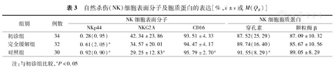 | 组别 | 例数 | NK细胞表面分子 | NK细胞胞质蛋白 | |||