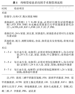 | 5~7 d | 每日血生化、电解质(必要时增加监测频率);24 h尿量、尿钠;垂体前叶激素 | |