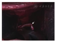 体格检查:脉搏96次/min,呼吸18次/min,血压126/77 mmHg(1 mmHg=0.133 kPa),身高162 cm,体重85 kg,体重指数32.4,心肺无异常,腹部膨隆,宫底脐上2 cm,腹围90 cm,无宫缩。阴道检查提示宫颈质地中等,居中,宫颈管长3 cm,宫口容1指,宫颈评分为2分。因患者有腹腔镜宫颈环扎手术史,故建议直接剖宫取胎或拆除环扎线后阴道分娩。经与患者充分沟通各术式利弊和风险后,患者同意经阴道拆除环扎线后引产,若经阴道拆除环扎线失败直接剖宫取胎。充分完善术前准备(包括术前阴道拭子培养及严格阴道手术消毒),并签署包括伦理及手术风险的知情同意书。孕26周时应用硬膜外麻醉行经阴道宫颈环扎线拆除术。术中上抬宫颈后唇,剪刀锐性剪开阴道后穹隆进盆腔,无粘连,于子宫下段后壁近内口水平处找到环扎带,在离原环扎线结近处剪断环扎线,完整抽出环扎带(图1),1-0可吸收线连续缝合后穹隆,暴露宫颈无异常。患者手术顺利,术中出血10 ml,术毕依沙吖啶100 mg羊膜腔注射引产。患者术后第2天早上规律宫缩,下午阴道分娩一重度唇腭裂的死胎,体重900 g,身长37 cm。患者引产后3 d,复查超声示盆腔及子宫无异常,经阴道窥器检查示后穹隆缝合处愈合好,出院。