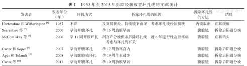 1955年至2015年拆除经腹放置环扎线的文献统计