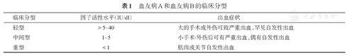 | 临床分型 | 因子活性水平(IU/dl) | 出血症状 |
