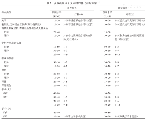 | 预期水平(IU/dl) | 疗程(d) | 预期水平(IU/dl) | 疗程(d) | ||