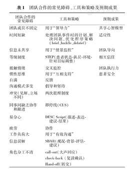 通常先向培训者介绍一下团队培训的历史、团队组织结构、医疗保健体系中团队合作的重要性。重点培训内容则在明确团队需要掌握的技能,围绕提升4项核心技能团队成员可以使用到的工具和策略,用于克服常见障碍以达到预期成果的工具和策略(表1)。最后,再通过一些特殊病例情景和视频来进一步强化学习。