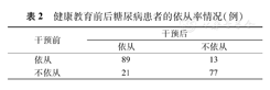 例2:某研究探讨健康教育对糖尿病患者依从率的影响,对200例糖尿病患者比较健康教育前后依从率的变化。作者采用配对χ2检验比较干预前后的依从率,分析结果显示有统计学意义(χ2=87.503,P<0.001),认为干预后显著提高了依从率。主要结果如表2所示。