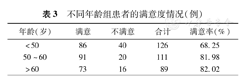 | 年龄(岁) | 满意 | 不满意 | 合计 | 满意率(%) |