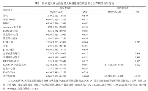 | NCCN-IPI中高危/高危 | 2.218(1.383~3.559) | 0.001 | 2.176(1.338~3.538) | 0.002 |