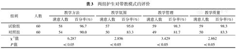 见表3。试验组护生对带教模式的评价高于对照组(P<0.05)。