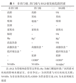 非贲门癌、贲门癌与EGJ癌发病危险因素