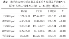 | 上方象限(μm) | 119.57±16.01 | 125.46±15.27 | 5.88±5.56 | <0.001 |