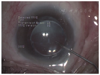 然而,YAG激光囊膜切开并非十全十美。激光能量及焦距控制不佳,会伤及IOL或其他眼内组织。前囊膜切开时沉积物释放入前房,堵塞小梁网,可造成眼压急升,伤及虹膜可造成出血或虹膜后粘连[12]。例3患者行前囊膜切开术后,白色泡沫状物质涌入前房,12 h后眼压急升至69 mmHg,无光感;虽急行前房穿刺、输液等降眼压治疗,视功能仍然受到不可逆的严重损害。后囊膜切开的患者,亦有可能因囊袋松解,前囊边缘与IOL的贴附松动,而使囊袋积液流入前房,升高眼压。故不论行何种方式的囊膜切开,均须格外警惕这一可能造成严重后果的并发症。