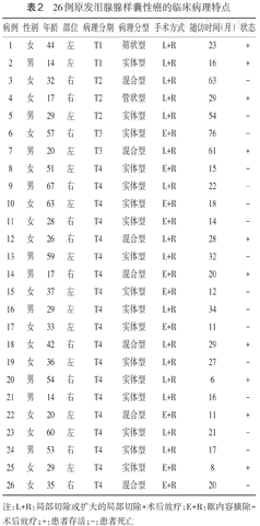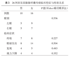 26例原发泪腺腺样囊性癌临床特征与性别关系