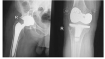 经过精心护理,患者住院期间未发生严重并发症,出院前影像学检查假体位置及力线满意。