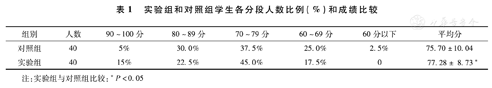 | 实验组 | 40 | 15% | 22.5% | 45.0% | 17.5% | 0 | 77.28± 8.73* |